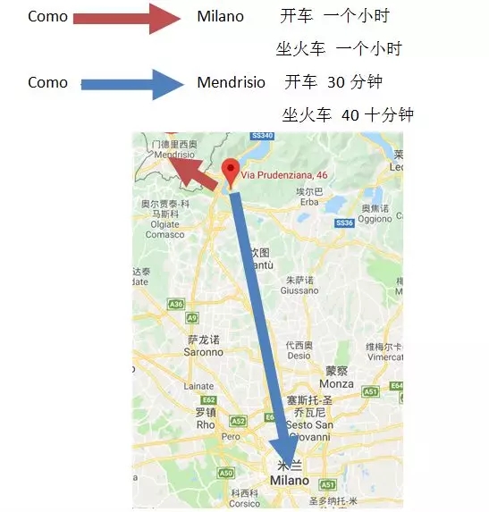 别墅离米兰火车站开车或坐火车一个小时, 而去瑞士的Mendrisio也只要开车30十分钟, 坐火车四十分钟。